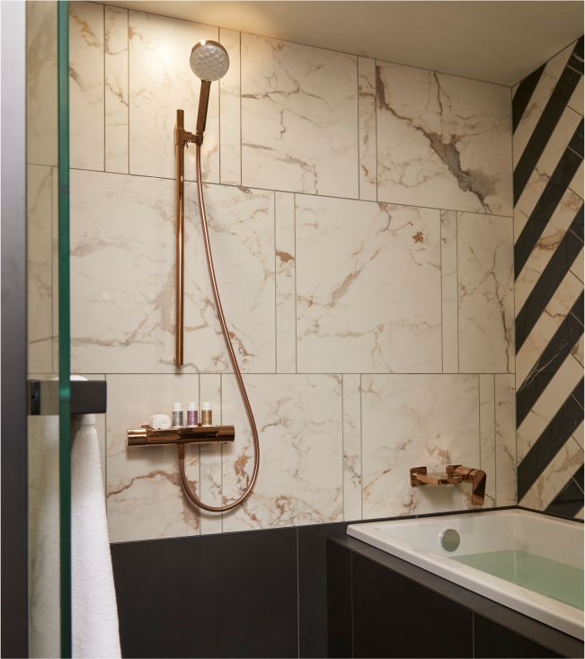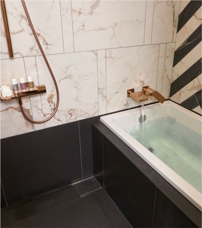 Marble, Large Ceramic Slab, Space, Bathtub, Lighting